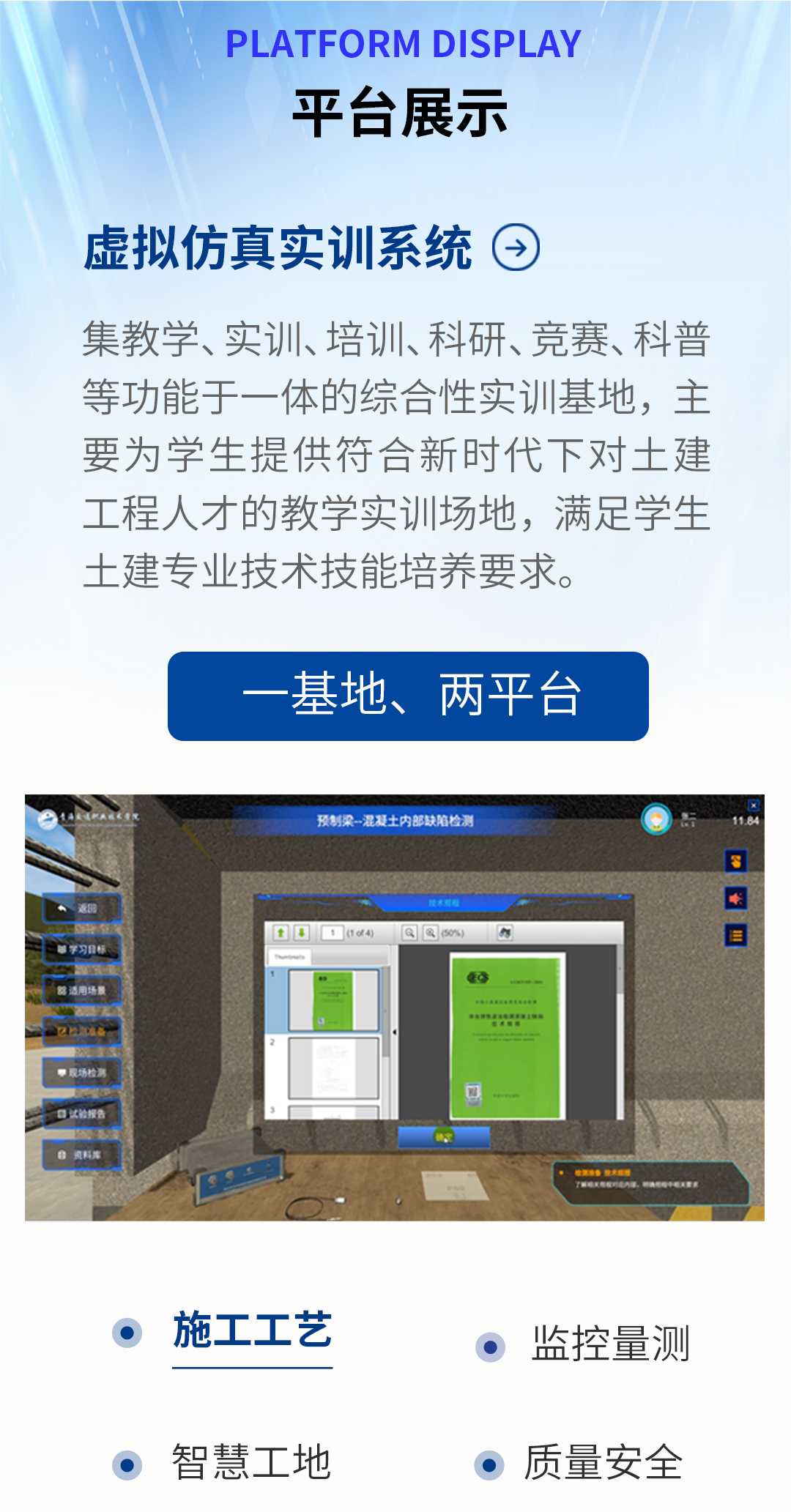 本方案立足工程建设行业发展实际,充分遵循普通高等教育及职业教育发展规律,利用数字技术、智能技术,搭建包含